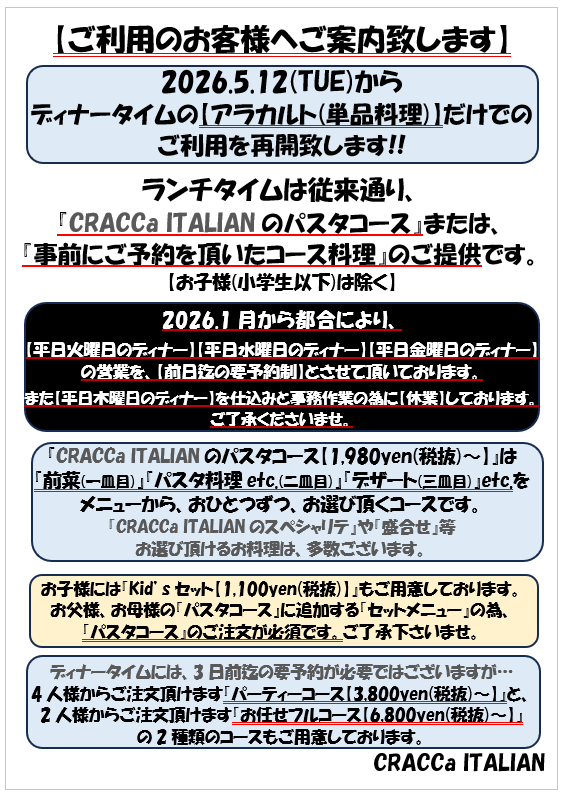 ランチ・ディナー共にご予約可能です、お気軽にお問い合わせください。